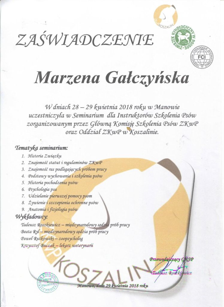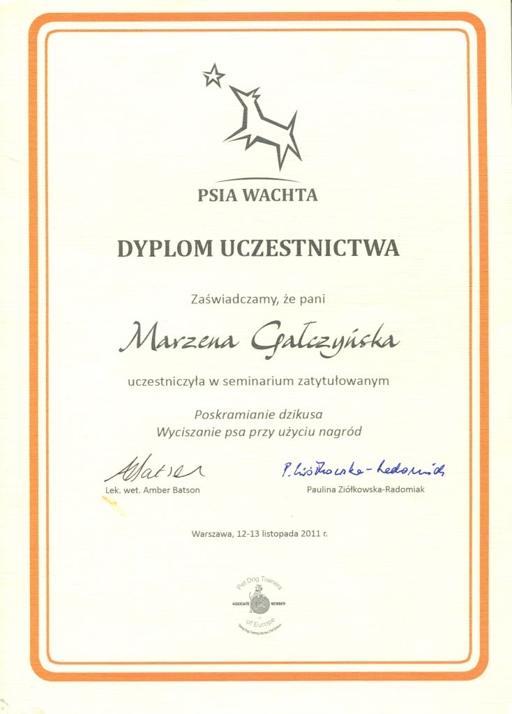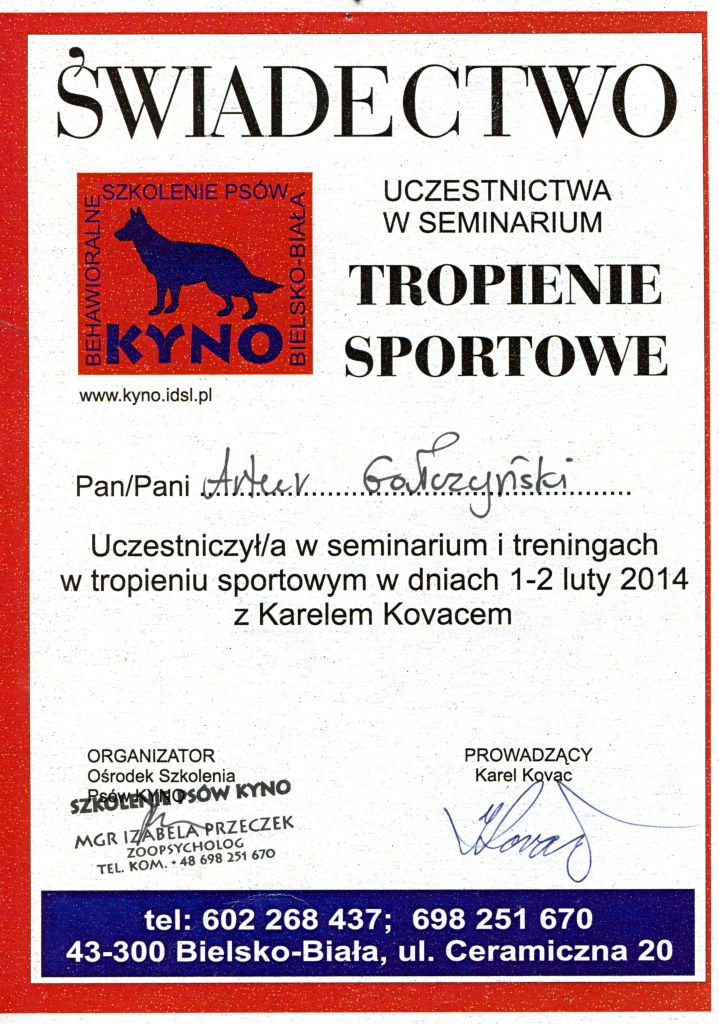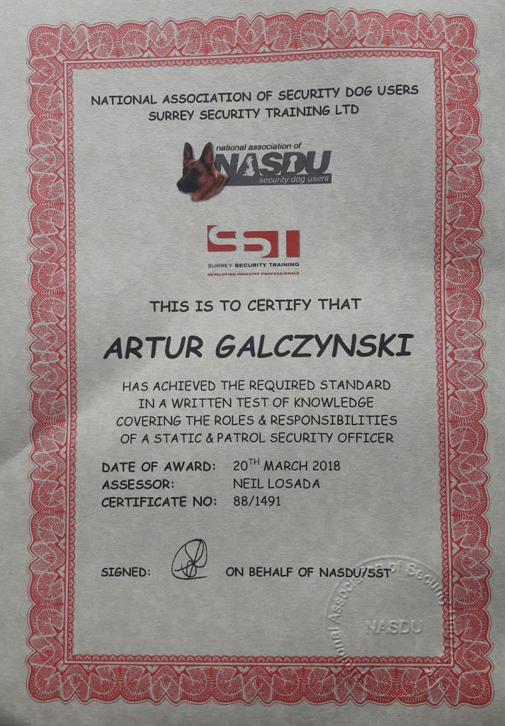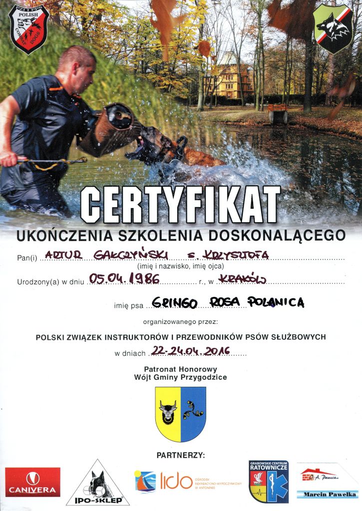 Pasję psią „odziedziczył” mój Syn, Artur Gałczyński, który początkowo ćwiczył z psem z naszej hodowli, GRINGO Rosa Polonica w kierunku IPO, a aktualnie pracuje z nim w służbach w Wielkiej Brytanii (licencja NASDU-3).
