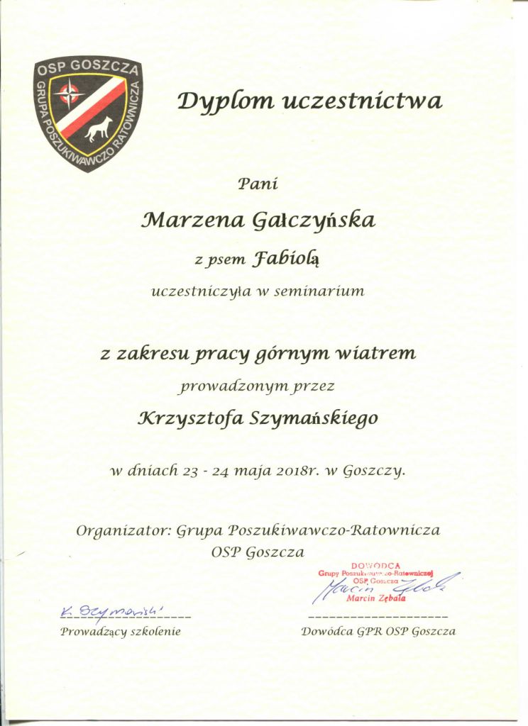 Początkowo z Fabiolą, ze względu na jej fenomenalny węch, łupowość i olbrzymią chęć współpracy z człowiekiem, planowaliśmy pracę w zespołach ratowniczych (Fabiola zaliczyła wstępny test). Niestety, sprawy osobiste zmusiły nas do zrezygnowania z tej opcji. Niemniej jednak, przygotowania nasze zaowocowały u Fabii jej wszechstronnością i umiłowaniem do podejmowania wyzwań, a u mnie miłością do pracy węchowej i do ratownictwa.