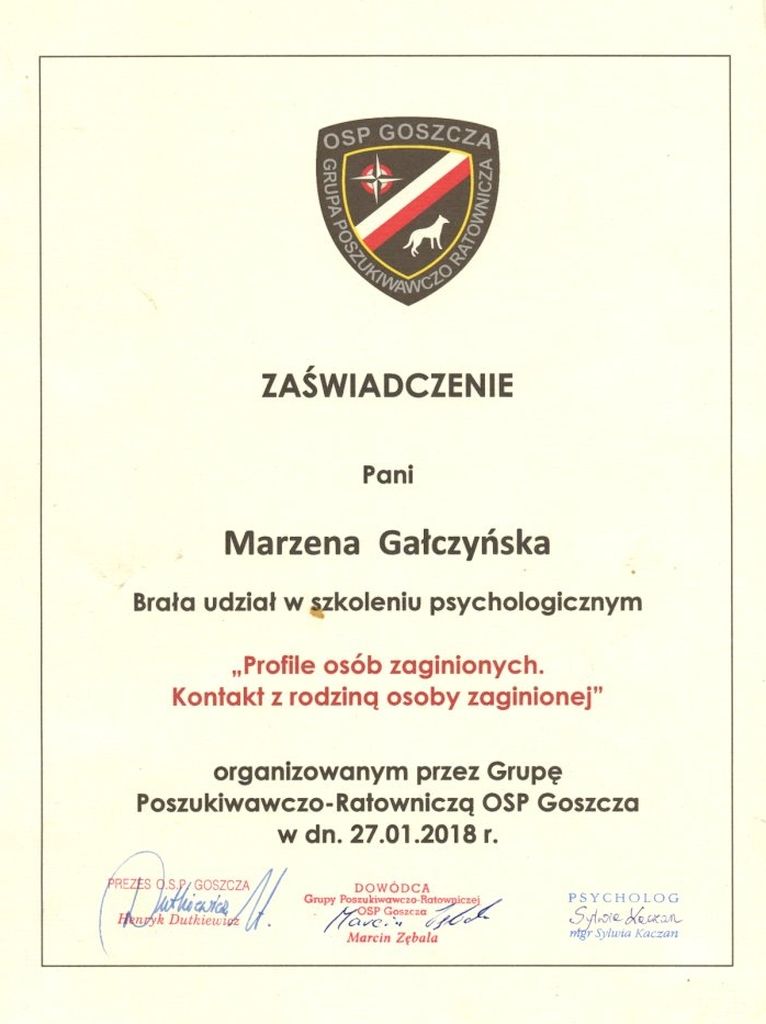 Czynnie wspieramy działalność ratowniczą psów (pozorujemy, bierzemy udział w treningach). Wspólnie z synem jestem autorką tłumaczenia na język polski regulaminów psów ratowniczych IRO.